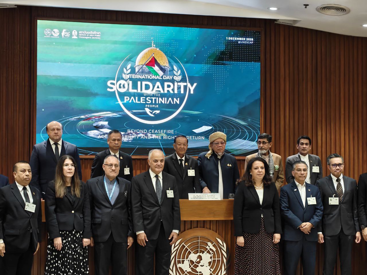 همایش بین‌المللی «روز همبستگی با مردم فلسطین» روز ۱ دسامبر ۲۰۲۵ در مرکز کنفرانس سازمان ملل متحد در بانکوک (UNCC) با حضور گسترده مقام‌های سیاسی، دیپلماتیک، دانشگاهی و مذهبی از کشورهای مختلف برگزار که این رویداد در چارچوب روزی است که مجمع عمومی سازمان ملل متحد بر اساس قطعنامه 32/40B مصوب ۱۹۷۷ به‌منظور یادآوری وضعیت حل‌نشده فلسطین و تأکید بر حقوق بنیادین و غیرقابل‌سلب ملت فلسطین در تقویم جهانی ثبت کرده است.