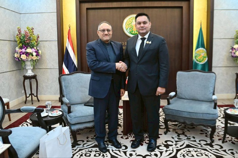 جناب آقای ناصرالدین حیدری، سفیر جمهوری اسلامی ایران در تایلند، روز جمعه 21 آذر 1404 با آقای «امین مایوسو» معاون وزیر کشاورزی و تعاون تایلند، دیدار و گفتگو کرد. طی این ملاقات، نامبردگان در خصوص نهایی کردن پیش نویس اسناد همکاری دو کشور در زمینه بهداشت دام و قرنطینه گیاهی و همچنین تبادل دانش در حوزه پرورش شیلات و گسترش تجارت محصولات کشاورزی به ویژه غذای حلال، بحث و تبادل نظر کردند. سفیر کشورمان از تمایل حوزه شیلات ایران جهت بهره مندی از تخصص کارشناسان شیلات تایلند در زمینه مقابله با همه گیری برخی بیماری‌ها در مزارع پرورش میگو در ایران و امکان سرمایه گذاری کارآفرینان تایلندی در صنایع دام و شیلات ایران خبر داد.