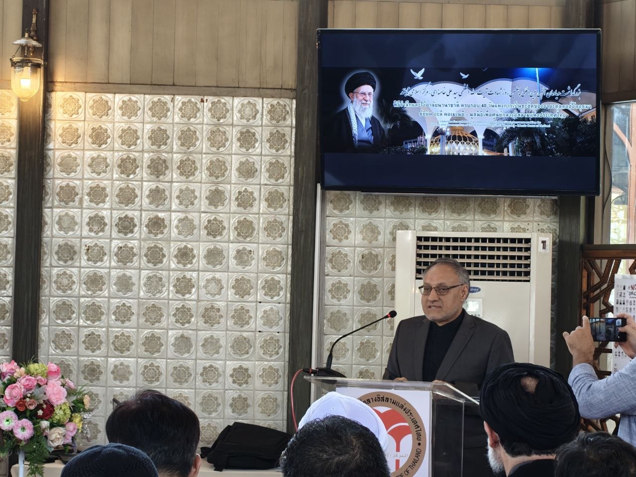 พี่น้องชายหญิงในศรัทธา เจ้าหน้าที่ผู้มีเกียรติ และแขกผู้มีเกียรติทุกท่าน ณ มูลนิธิเพื่อศูนย์กลางอิสลามแห่งประเทศไทย เราได้มาชุมนุมกันในวันนี้เนื่องจากเวลาได้ล่วงเลยมาครบ 40 วัน นับจากเหตุการณ์ที่ขมขื่นที่สุดและในขณะเดียวกันก็เป็นเหตุการณ์ที่ยิ่งใหญ่ที่สุดในประวัติศาสตร์ร่วมสมัยของอิหร่าน เมื่อ 40 วันก่อน อิหร่านและโลกอิสลามไม่ได้สูญเสียเพียงแค่ผู้นำผู้ชาญฉลาดเท่านั้น แต่ยังสูญเสียบิดาผู้เปี่ยมด้วยความเมตตาของประชาชาติอิหร่าน และผู้เฝ้าสังเกตการณ์ที่เฉียบแหลมบนเส้นทางสู่การปลดปล่อยกรุงอัล-กุดส์ (เยรูซาเล็ม) อันศักดิ์สิทธิ์และเกียรติยศของชาวมุสลิม